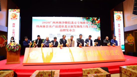 當(dāng)日,推介會(huì)上商賈云集,賓朋滿座,大家一起品桔子,敘友情,謀發(fā)展,求共贏!2020年西林沙糖桔推介活動(dòng)”正式啟動(dòng),將活動(dòng)氛圍推向高潮;顒(dòng)中舉行了西林沙糖桔區(qū)域公用品牌揭牌儀式。西林縣與北京新發(fā)地農(nóng)產(chǎn)品發(fā)批市場(chǎng)簽署戰(zhàn)略合作協(xié)議,西林企業(yè)、電商代表與銷售流通企業(yè)進(jìn)行產(chǎn)銷對(duì)接簽約,達(dá)成了當(dāng)日簽約銷售西林沙糖桔近7000噸,產(chǎn)值超過(guò)5000萬(wàn)元。