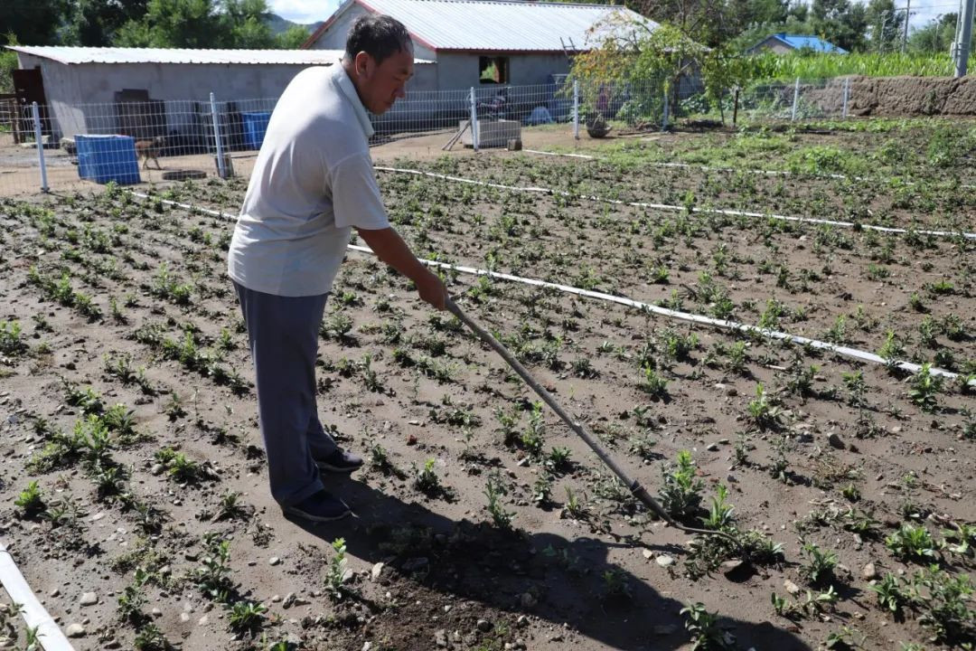 雨后的雜草長勢迅捷,劉根柱一絲不茍的一鋤一鋤為蒼術(shù)除草,據(jù)悉,他是去年開始試種的,別看接觸時間較短,但他對蒼術(shù)種植已然有了自己的不少見解,有點土專家的架勢?粗纳顮顩r很難想象幾年前他還是建檔立卡貧困戶,據(jù)了解,劉根柱一家三口,有個女兒,以前他與老伴都疾病纏身,無法干重體力活兒,家里既沒產(chǎn)業(yè),自身也沒發(fā)展動力,生活窮困潦倒。自從2015年被納入精準(zhǔn)扶貧貧困戶后生活狀況才逐漸得以改變,最直接的改變是看病少花錢了,而且多年的疾病得到治療和調(diào)理,隨后的“菜單式”產(chǎn)業(yè)的落實,家里有了穩(wěn)定的經(jīng)濟(jì)來源,扶貧干部們的耐心勸導(dǎo)更是讓一家重拾發(fā)展的信心,逐漸生活動力十足。鄉(xiāng)村干部眼里看著劉根柱一家的變化,2019年為加快推進(jìn)當(dāng)?shù)赝ピ航?jīng)濟(jì)發(fā)展,為他家提供免費蒼術(shù)苗,旨在示范引領(lǐng)!拔壹屹I的扶貧牛從最初的6頭發(fā)展到10頭了,去年和前年各賣了2頭公牛犢,平均每頭8000元,種的幾畝藥材幾年后又有不菲的收入,我相信只要好好干生活肯定越來越好!眲⒏判臐M滿的說。聽他盤算起收入賬,可以看出他家的生活的確越來越好了,產(chǎn)業(yè)不僅得到了發(fā)展,難得的是每年又有不菲的收入,但比起產(chǎn)業(yè)和收入的增加,更可貴的是他重拾的信心,只有信心才是戰(zhàn)勝困難的利劍,才是達(dá)向理想彼岸的方舟。(烏云巴圖)