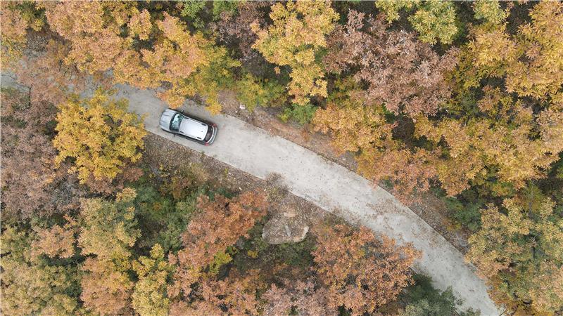 11月5日在邢臺(tái)市信都區(qū)漿水鎮(zhèn)前禪房村拍攝的太行山秋景(無人機(jī)照片)。新華社記者 駱學(xué)峰 攝