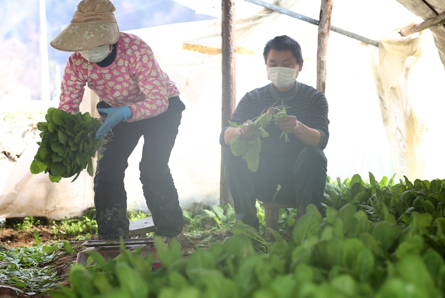 15日,湖北省十堰市張灣區(qū)花果街辦安溝村村民正在田間澆地培墑撒種、采收蔬菜。該村有集中連片土地250余畝,是城區(qū)鮮菜主要種植基地,為確保農(nóng)業(yè)生產(chǎn)和城市供應(yīng),該村以疫情防控為底線,采取統(tǒng)購農(nóng)資、分散錯(cuò)時(shí)等辦法有序開展春播生產(chǎn),確保將疫情損失降至最低。