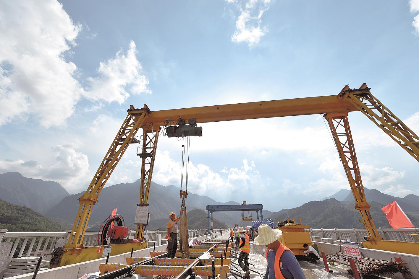 工人在保神高速公路后坪互通樞紐加緊建設(shè)。全長(zhǎng)43.3公里的保神(?抵辽褶r(nóng)架)高速是湖北省“十三五”重點(diǎn)規(guī)劃項(xiàng)目,也是神農(nóng)架林區(qū)通往外界的首條高速公路。(湖北日?qǐng)?bào)全媒記者 田悅 通訊員 楊韜 攝)