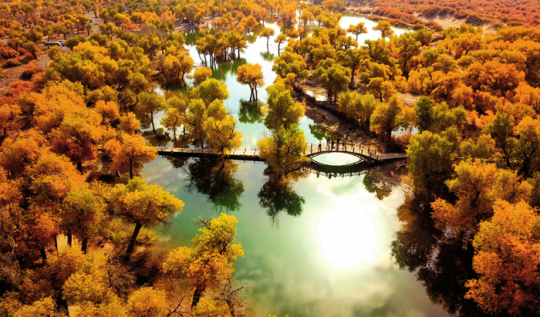 內(nèi)蒙古阿拉善盟額濟納旗境內(nèi)的胡楊林。(彭源于2019年10月16日攝)