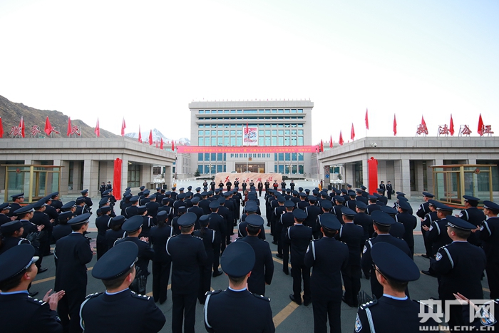 2019年1月1日9時,中華人民共和國西藏出入境邊防檢查總站揭牌暨換裝儀式在拉薩舉行。(央廣網(wǎng)發(fā) 胡俊浩 攝)