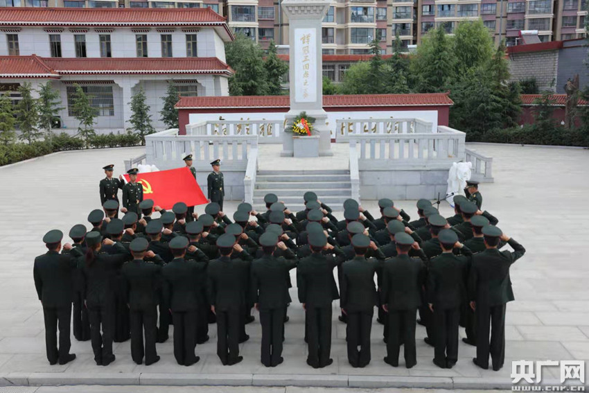圖為官兵在先烈墓碑前面對(duì)黨旗進(jìn)行宣誓(央廣網(wǎng)發(fā) 通訊員供圖)