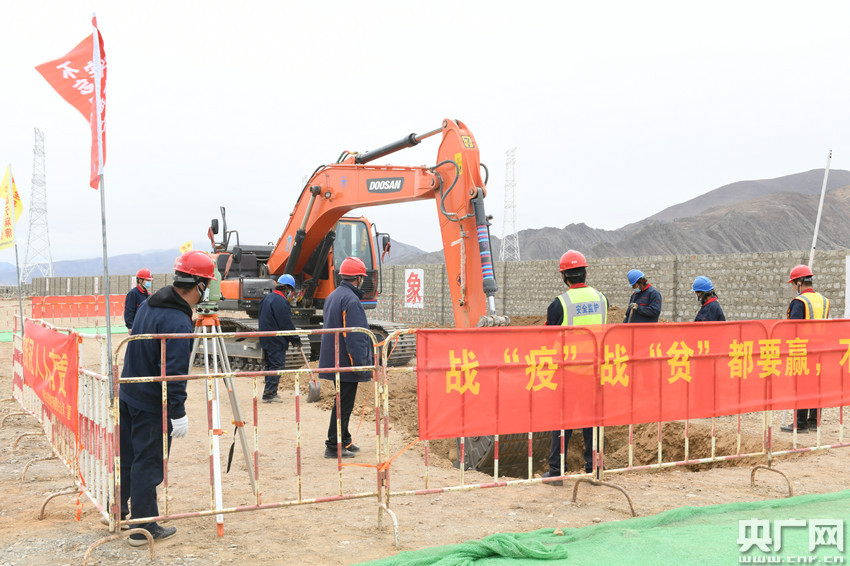 阿里與藏中電網(wǎng)聯(lián)網(wǎng)工程查務(wù)500千伏變電站新建工程——機(jī)械開槽配合人工清邊(央廣網(wǎng)發(fā) 閆昱翰 攝)