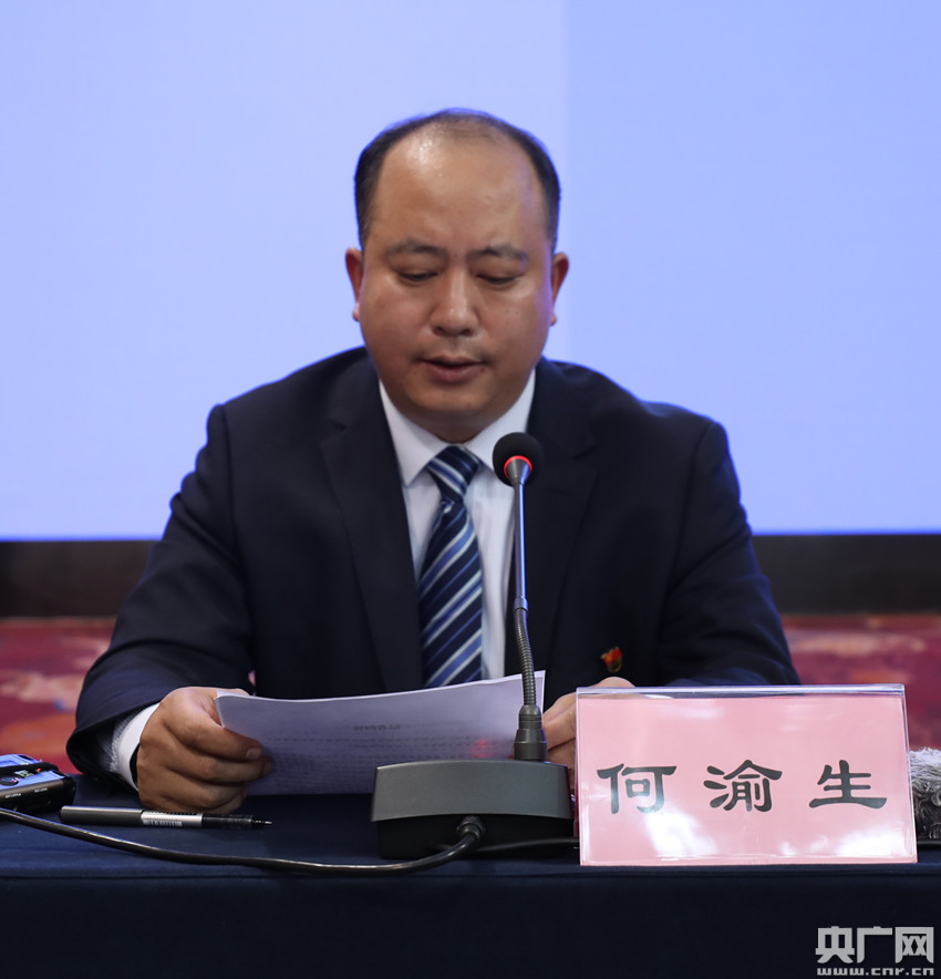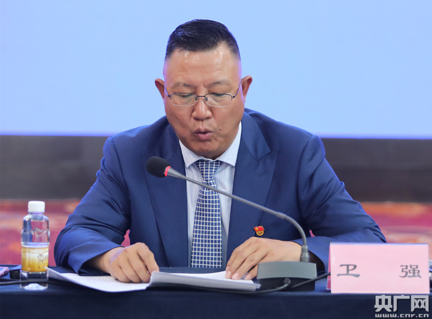 昌都市政府副市長(zhǎng) 衛(wèi)強(qiáng)介紹70年來(lái)昌都經(jīng)濟(jì)社會(huì)發(fā)展情況(央廣網(wǎng)記者 普布次仁 攝)