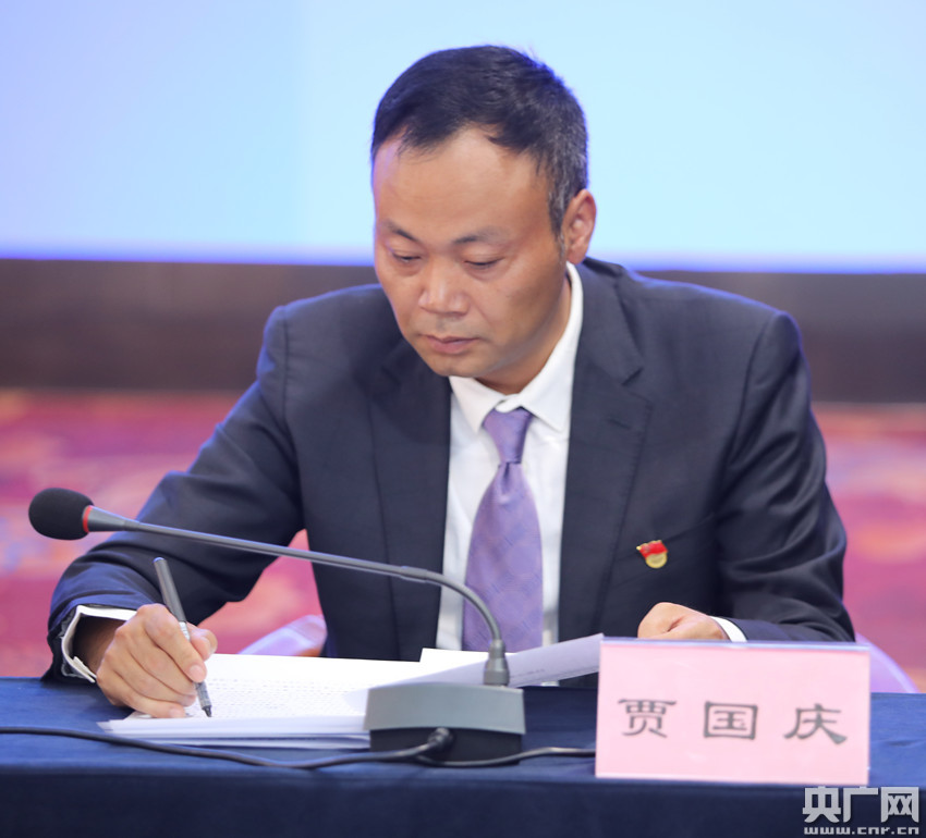 昌都市扶貧辦黨組成員 副主任賈國(guó)慶介紹脫貧攻堅(jiān)工作情況(央廣網(wǎng)記者 普布次仁 攝)