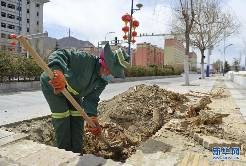 3月10日,拉薩市城關(guān)區(qū)潔達園林公司工人在清理枯枝死樹。新華社記者劉東君 攝 春季來臨,園林工人開始在拉薩市區(qū)各路段、公園、街旁綠地、綠化帶、機關(guān)單位、居民區(qū)中開展春季綠化補栽工作,以保證2017年上半年市區(qū)綠地完好、長勢優(yōu)良。據(jù)拉薩市林業(yè)綠化局介紹,目前拉薩市城市綠化率達到37.6%,城市人均公共綠地面積達9.7平方米。 -