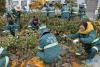 3月11日,拉薩市城關(guān)區(qū)潔達園林公司工人在整理紅葉石楠苗木。新華社記者劉東君 攝