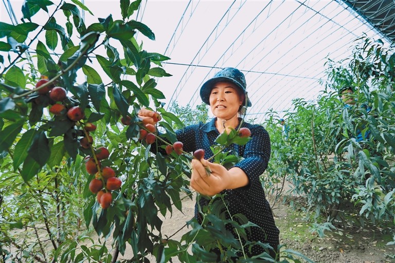 墨竹工卡縣工卡鎮(zhèn)苗木花卉基地技術(shù)人員正在采摘水果。通訊員洛?酥 記者唐斌 攝
