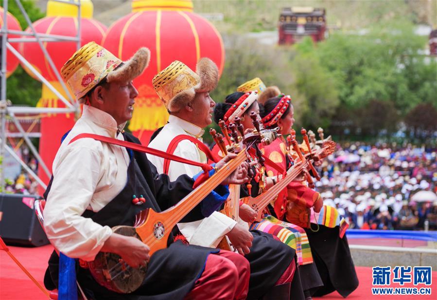 •      演員在西藏日喀則“民族團結(jié)進步日”文藝演出中彈奏扎木念(6月2日攝)。新華社記者 劉東君 攝