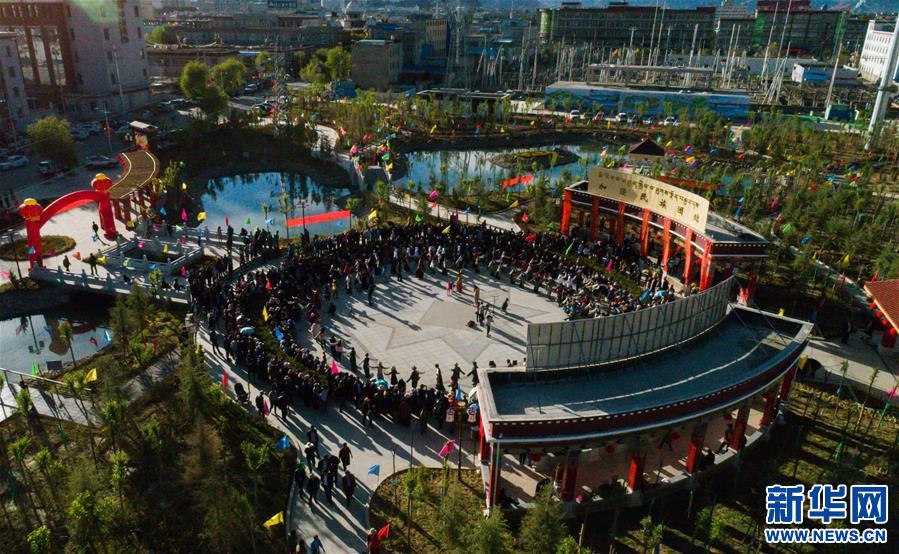 •      西藏日喀則市群眾在民族團結(jié)主題公園內(nèi)跳鍋莊舞(6月2日無人機拍攝)。新華社記者 劉東君 攝