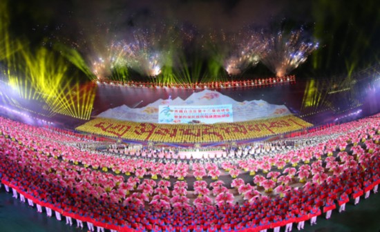 7月22日晚,西藏自治區(qū)第十二屆運(yùn)動(dòng)會(huì)暨第四屆民族傳統(tǒng)體育運(yùn)動(dòng)會(huì)在拉薩隆重開(kāi)幕。圖為開(kāi)幕式現(xiàn)場(chǎng)。記者姚海全攝
