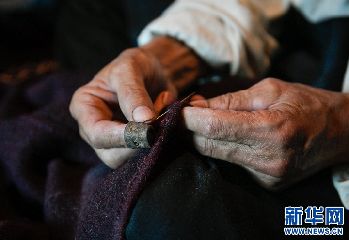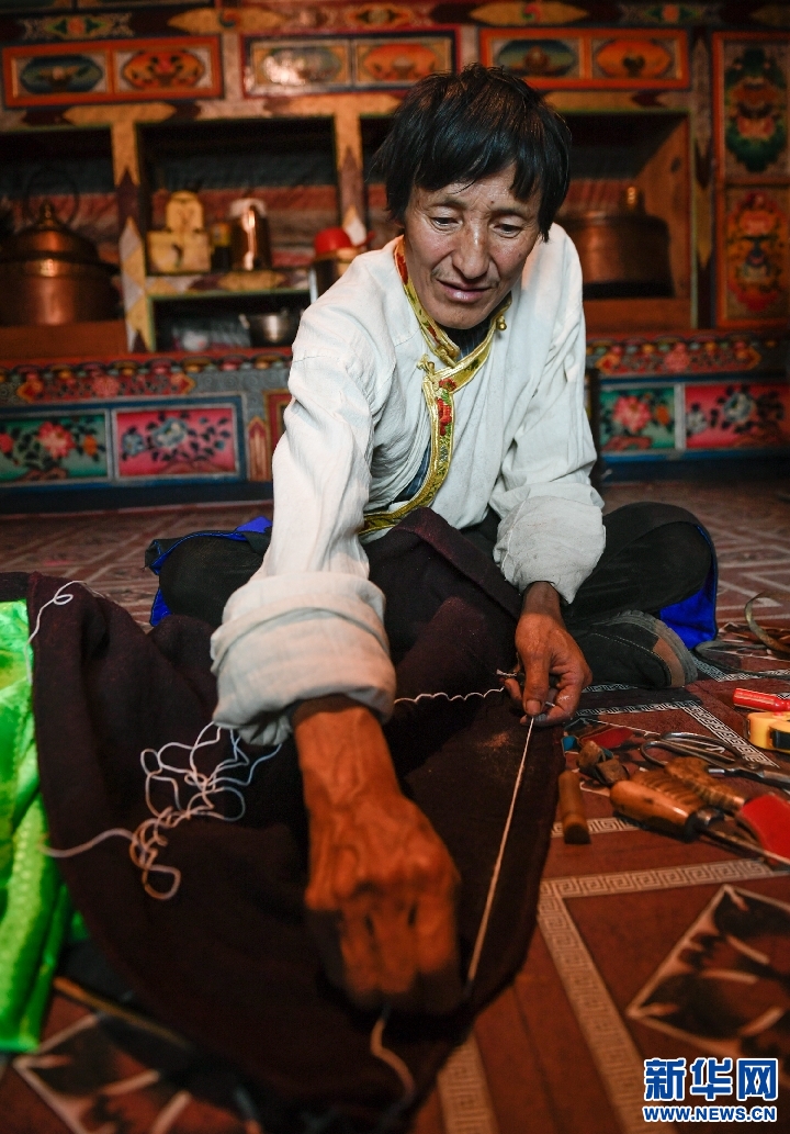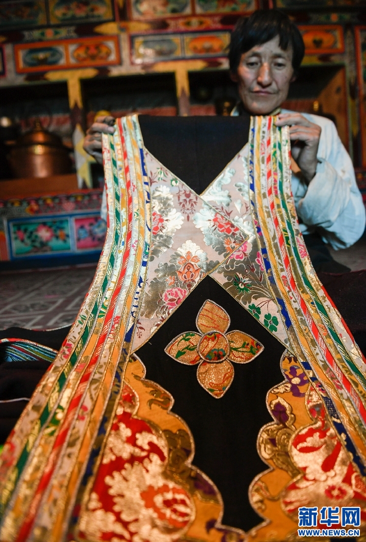 。叮硽q的白瑪金巴是波密縣多吉鄉(xiāng)德吉村人,從17歲起便開(kāi)始學(xué)習(xí)藏裝制作,手藝精湛,遠(yuǎn)近聞名,去年被確定為波密縣非物質(zhì)文化遺產(chǎn)傳承人。