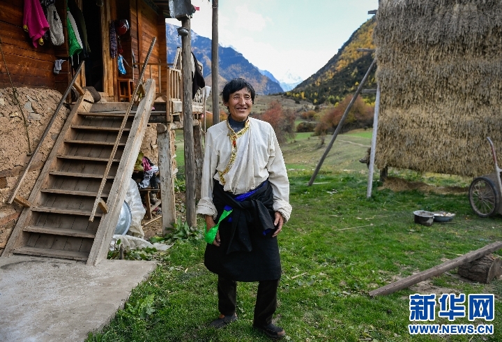 白瑪金巴在家門口(10月24日攝)。新華社記者 劉東君攝