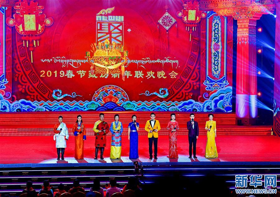 2019春節(jié)藏歷新年聯(lián)歡晚會的錄制現(xiàn)場(1月19日攝)。新華社記者 張汝鋒 攝