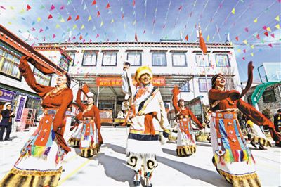 拉薩阿壩林卡社區(qū)老年文藝隊(duì)為群眾表演節(jié)目。