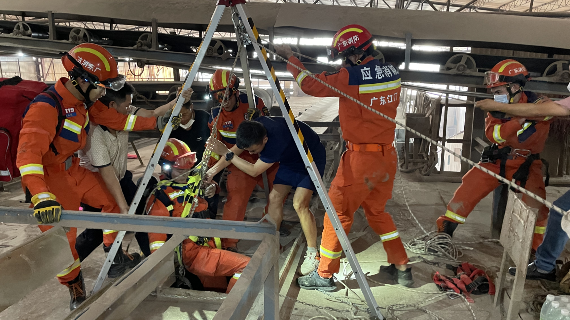 江門消防成功解救受困工人