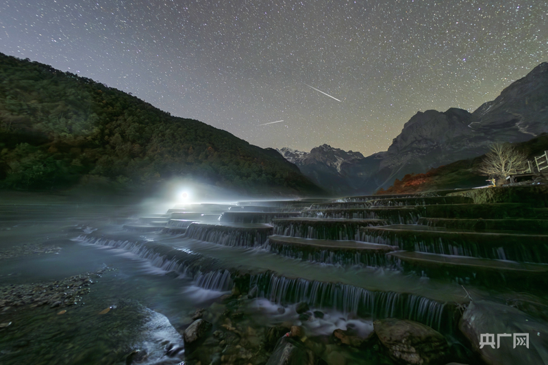 流星劃過(guò)麗江玉龍雪山藍(lán)月谷上空(央廣網(wǎng)發(fā) 衛(wèi)楷文 攝)