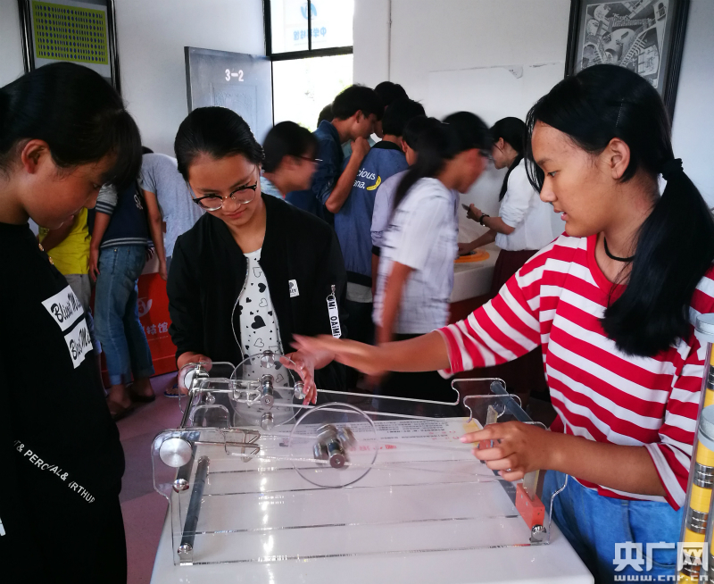 漭水中學(xué)以2017年“全國(guó)科普日”為契機(jī),注重互動(dòng)體驗(yàn)、感悟創(chuàng)新、寓教于樂(lè),科技館每天向?qū)W生開放兩小時(shí),按照科技興趣社團(tuán)日程安排,所有班級(jí)學(xué)生分期分批進(jìn)入中學(xué)科技館參觀。在開放時(shí)間內(nèi),還安排專職科技輔導(dǎo)老師講解各展品的科學(xué)原理,讓學(xué)生不出校門就能親身體驗(yàn)探索現(xiàn)代科學(xué)技術(shù)帶來(lái)的無(wú)限樂(lè)趣,接觸科學(xué)、體驗(yàn)科技、開闊眼界、增長(zhǎng)知識(shí)。