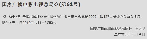 《廣播電視廣告播放管理暫行辦法》同時廢止。