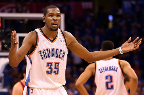 凱文-杜蘭特拿下了36分,全部是前三節(jié)所得,他還有7個(gè)籃板和7次助攻。雷吉-杰克遜得了20分,塞爾吉-伊巴卡14分9個(gè)籃板。