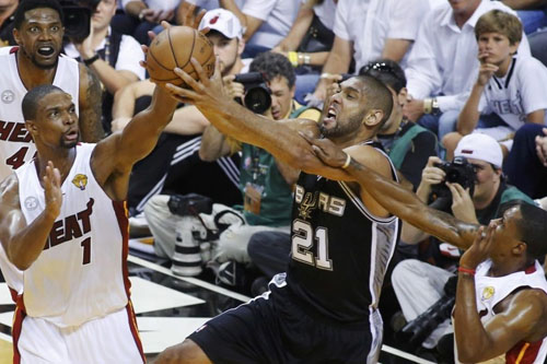 北京時(shí)間6月10日,NBA總決賽第二戰(zhàn)開(kāi)打。邁阿密熱火主場(chǎng)以103-84大勝圣安東尼奧馬刺,將總比分扳成1-1平。詹姆斯17投7中,得了17分、8個(gè)籃板和7次助攻,他還搶斷3次,蓋帽3次。查爾默斯拿下了全隊(duì)最高的19分。馬刺方面,格林三分球5投5中,拿下17分,托尼-帕克13分5次助攻,蒂姆-鄧肯13投3中,只得9分11個(gè)籃板。