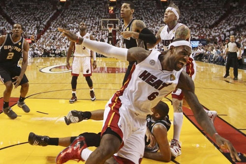 北京時(shí)間6月19日,雷-阿倫在常規(guī)時(shí)間結(jié)束前5.9秒投中一記三分,挽救了熱火,最終在加時(shí)以103-100擊敗馬刺,將總比分扳成3-3。勒布朗-詹姆斯打出三雙,貢獻(xiàn)32分、11次助攻和10個(gè)籃板。德維恩-韋德貢獻(xiàn)14分。蒂姆-鄧肯是前三節(jié)的功臣,為馬刺拿下了30分17個(gè)籃板,而托尼-帕克則在關(guān)鍵時(shí)刻發(fā)威,貢獻(xiàn)19分8次助攻,馬努-吉諾比利得了9分,但失誤8次。