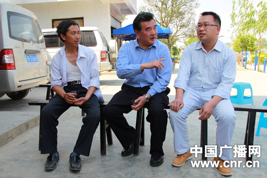 中央臺“走轉(zhuǎn)改”傾聽貴州大型采訪活動啟動,圖為記者王求向當(dāng)?shù)卮迕耜愘F忠一家了解情況。(中廣網(wǎng)記者 涂傲/攝)