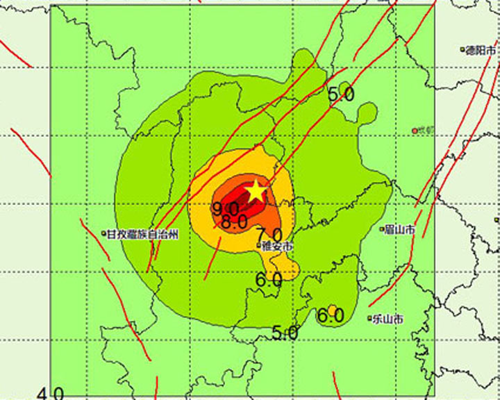 地震局發(fā)布蘆山地震烈度圖