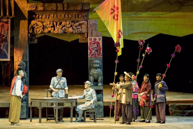 全劇中作為意象的獨(dú)特表達(dá),“走向黃河”這條脈絡(luò)在“集結(jié)”、“別離”、“論生”、“赴死”四幕中交融呈現(xiàn),寫實(shí)和寫意交錯并行,通過“黃河冷娃”在宋旅長等人物的帶領(lǐng)下欣然赴死,獲得永生。
