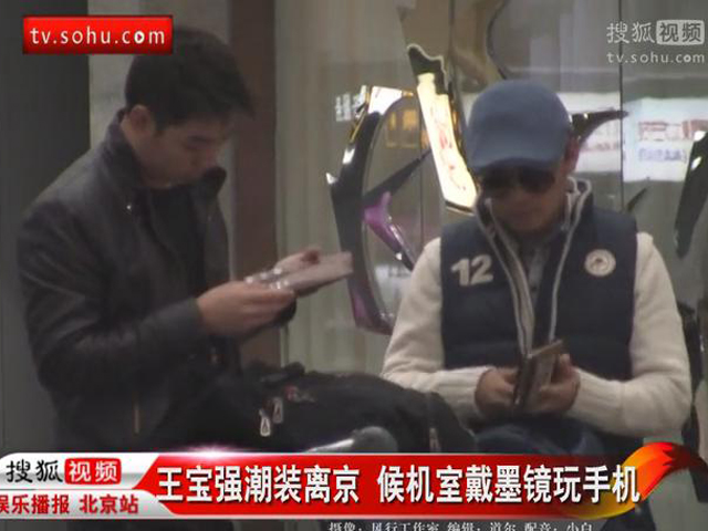 王寶強(qiáng)潮裝離京 候機(jī)室戴墨鏡玩手機(jī)