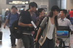 湯唯現(xiàn)身機(jī)場(chǎng)電話不離手