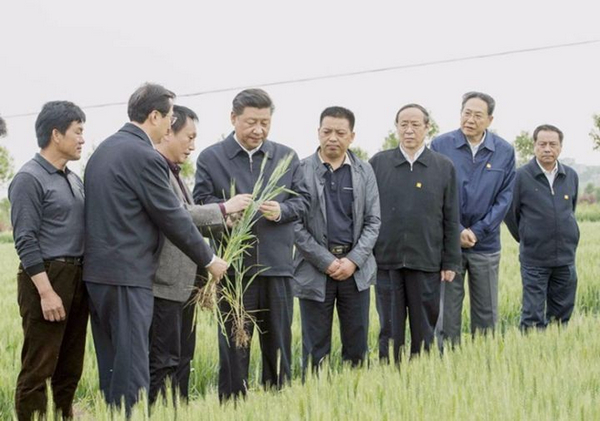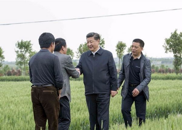 2016年4月25日下午,習(xí)近平來到小崗村4300畝高標(biāo)準(zhǔn)農(nóng)田示范點(diǎn),沿著田埂走進(jìn)麥田,察看小麥長勢