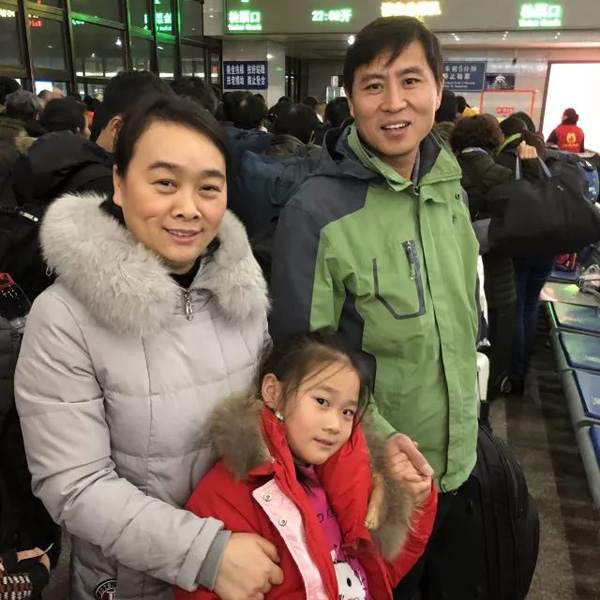 1月25日晚上,記者在北京西站候車室里與老郭一家三口匯合,也第一次見到了他的妻子和女兒。在北京的這些年,郭海旺并不孤單。媳婦兒余菊花2000年來北京和他一起打工,當(dāng)年生下了女兒琦琦。最初和很多人一樣,孩子生下來就被送回河南老家。但老郭兩口子思來想去,還是在琦琦3歲時(shí)把她接到了自己身邊,接到北京上學(xué)。當(dāng)然,這并不容易。