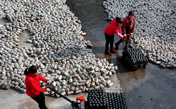 1月6日,當地群眾在鑫農食用菌專業(yè)合作社生產菌種。