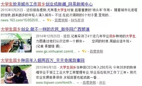 在百度里輸入“大學生 回鄉(xiāng)”兩個關鍵詞,搜索到的內容達到273萬條。