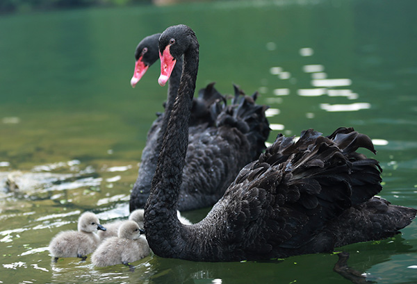 近日,張家界寶峰湖風(fēng)景區(qū)一對(duì)黑天鵝成功育出四只小天鵝,為景區(qū)增添了一個(gè)溫馨的場(chǎng)景。