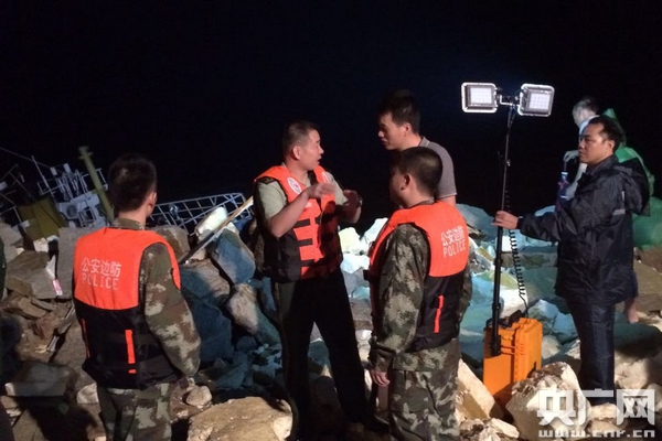 廣東省汕頭市海門邊防派出所官兵正在與各部門緊急商討救援策略。 李鵬 攝
