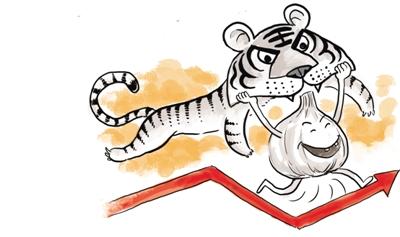 大蒜價格每隔三五年就要大幅波動一回,蒜商飽受其苦,稱“大蒜價格波動起來像老虎吃人”。業(yè)內(nèi)人士因此形容其為“白老虎”。從2010年至2012年又到如今,每一輪物價上漲,“蒜你狠”都是帶頭大哥。這一輪白老虎又撲來,或許還要從貨幣因素上挖掘原因。