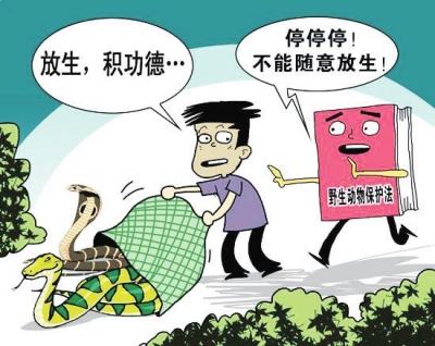 新法規(guī)定,隨意放生野生動物,造成他人人身、財產(chǎn)損害或者危害生態(tài)系統(tǒng)的,依法承擔法律責任。林業(yè)部門表示,外來物種放生問題,以往執(zhí)法部門只是規(guī)勸,以后就更加有約束力了。該規(guī)定還意味著,選擇放生地點前,需經(jīng)過評估,適合放生才能放;而以往放哪里怎么放沒有規(guī)定,有的地方就曾出現(xiàn)有人放生一大批蛇,讓附近居民很擔心的事情。