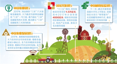在我國(guó)銀行業(yè)推動(dòng)金融精準(zhǔn)扶貧的過程中,各大銀行各顯身手。國(guó)開行2016年共發(fā)放精準(zhǔn)扶貧貸款3153億元;“十三五”期間,國(guó)開行將發(fā)放脫貧攻堅(jiān)貸款1.5萬億元,其中2017年計(jì)劃發(fā)放4000億元,精準(zhǔn)支持貧困地區(qū)基礎(chǔ)設(shè)施、易地扶貧搬遷、特色產(chǎn)業(yè)發(fā)展、教育衛(wèi)生改善等領(lǐng)域。郵儲(chǔ)銀行則在今年初明確了下一步金融精準(zhǔn)扶貧的六項(xiàng)工作,包括通過開展幫助貧困大學(xué)生上學(xué)就業(yè)、貧困地區(qū)分支行“幫帶提升”、無償捐贈(zèng)等多種方式,推進(jìn)脫貧攻堅(jiān)工作有效開展。