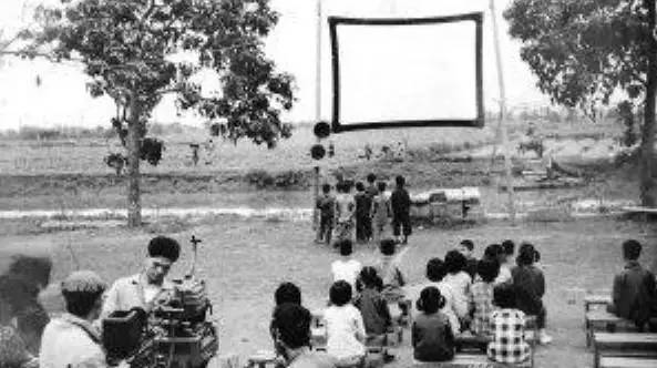 這是我們六七十年代村頭的露天電影,每到周末晚上,家里的娃娃們拿著自家的椅子乖乖的等放映電影。