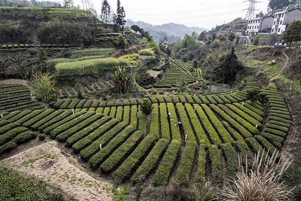 3月29日航拍湖北省宜昌市夷陵區(qū)太平溪鎮(zhèn)落佛村的一片茶園。