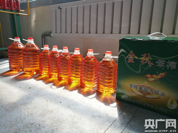 東北地區(qū)食用油以大豆油為主,對(duì)大豆油的需求十分龐大。楊志金是金秋笨榨大豆油作坊的負(fù)責(zé)人,他介紹說,他們采用的是笨榨的方法,類似古法壓榨,原材料都是合作社社員自家種植的非轉(zhuǎn)基因大豆,這種方式壓榨出來的大豆油口感好、顏色漂亮。超市里普通大豆油賣七八塊錢一斤,金秋笨榨大豆油能賣到15元一斤。