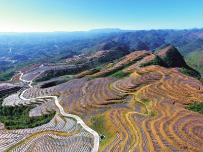 在大方縣雨沖鄉(xiāng),由恒大集團(tuán)幫扶援建的油用牡丹套種皂角基地已頗具規(guī)模。層層梯田向山頂盤(pán)繞,蜿蜒如春螺,披嵐似云塔,賦予荒山生命的律動(dòng)。