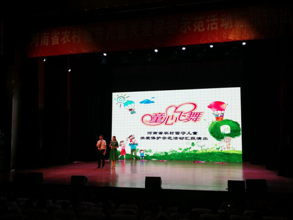 河南省文化廳藝術(shù)幼兒園和淮陽縣留守兒童關(guān)愛學(xué)校開展聯(lián)合文藝匯演現(xiàn)場。