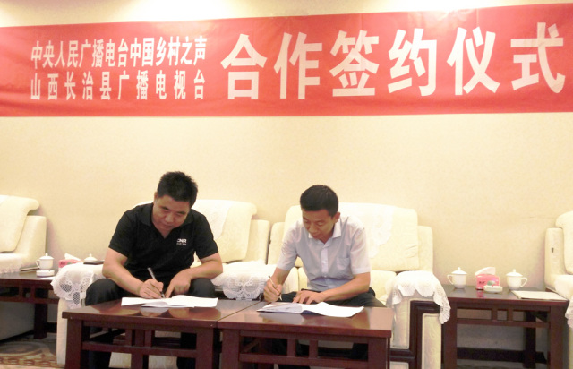 中央人民廣播電臺(tái)社教節(jié)目中心黨總支專(zhuān)職書(shū)記彭忠蛟與長(zhǎng)治縣廣播電視臺(tái)臺(tái)長(zhǎng)馮鵬威進(jìn)行了簡(jiǎn)短正式的合作簽約儀式,從今年10月1日起,長(zhǎng)治縣的父老鄉(xiāng)親就可以聽(tīng)到中國(guó)鄉(xiāng)村之聲的節(jié)目了。