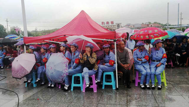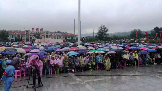 ▲群眾打傘看演出,熱情似火蓋過(guò)了大雨