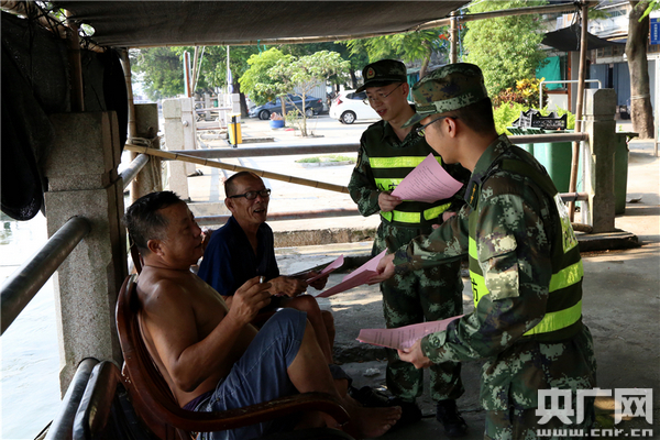 汕頭邊防支隊媽嶼邊防派出所官兵向轄區(qū)居民告知臺風(fēng)“天鴿”最新情況。周峰 攝